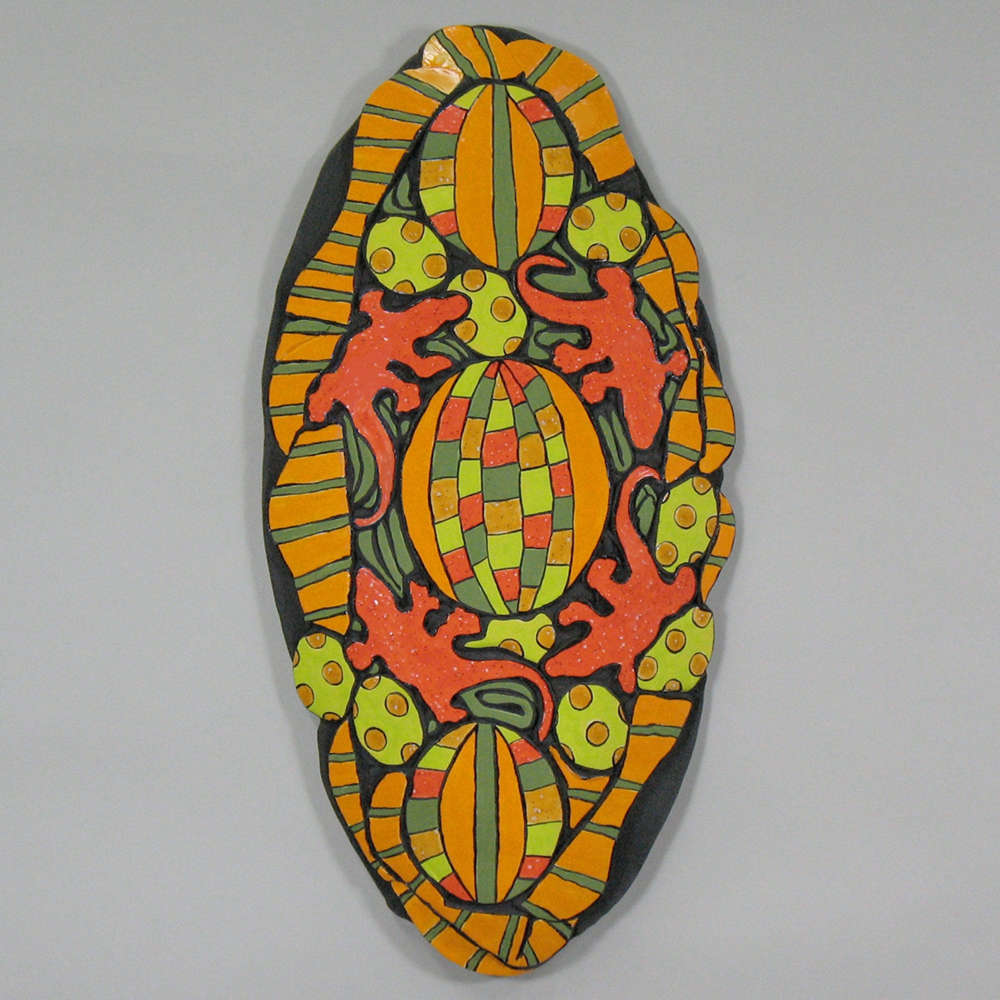 Previous Image Next Image Dreamtime “Dreamtime” Medium: Low fire ceramic. Length: 15.5″; Width 7.75″. Glaze and underglaze. Artist: Beth Hardesty. Sold.