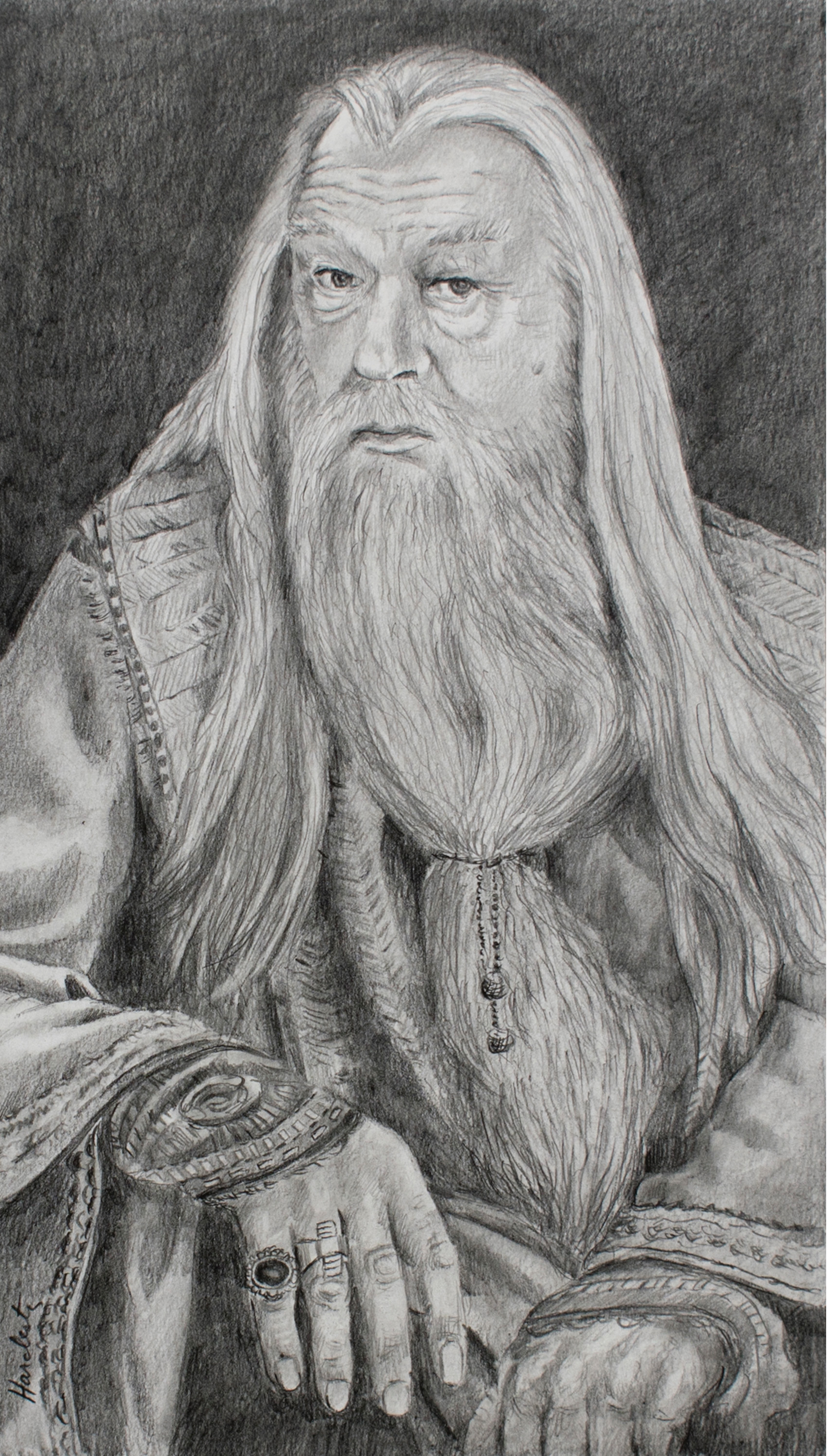 Previous Image Next Image Michael Gambon as Dumbledore Drawing of Michael Gambon as Dumbledore in Harry Potter movies, by David Hardesty, graphite pencil on paper