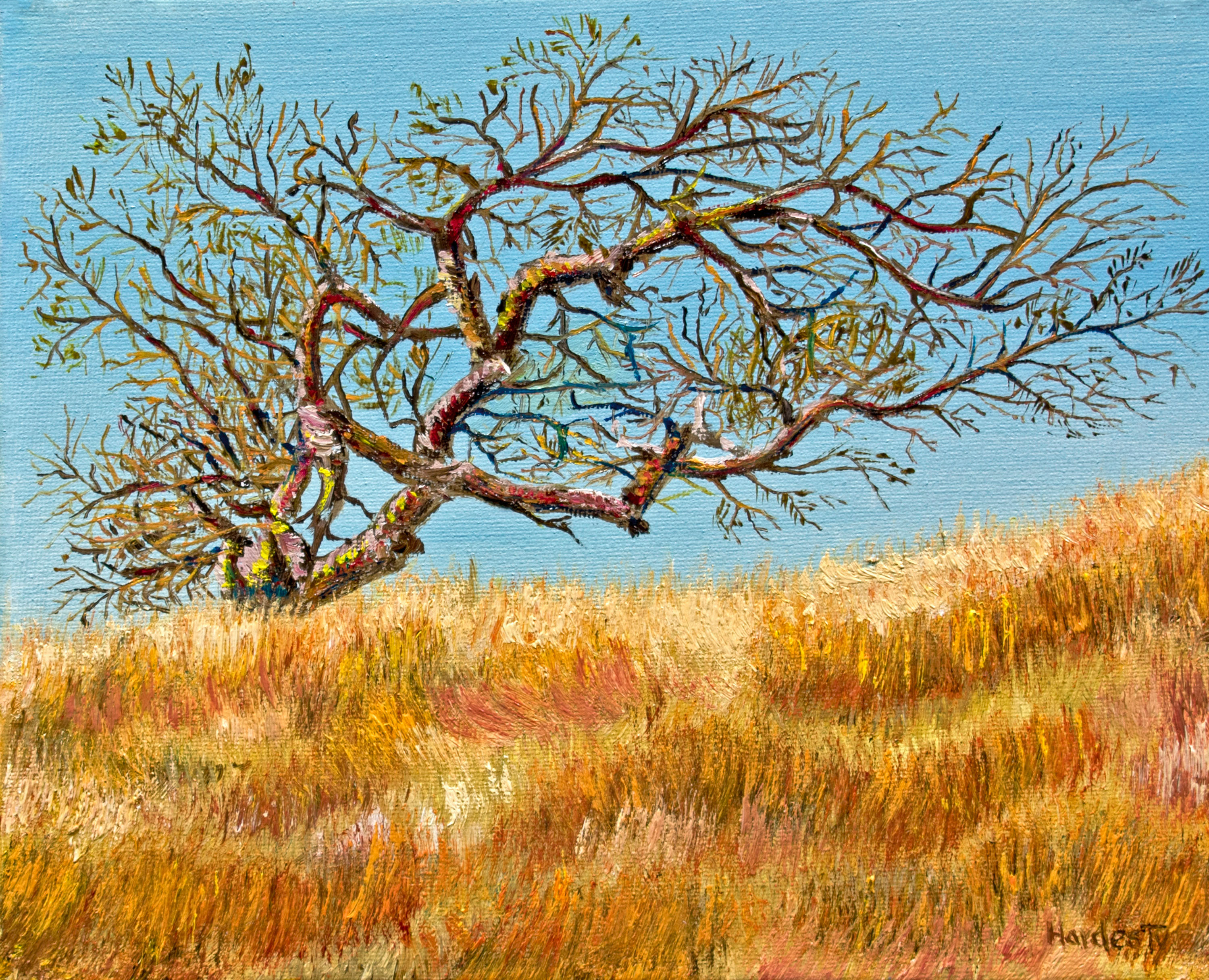 Arbol de Espiritu, by David Hardesty, oil on canvas 8×10, part of Marin County Series.