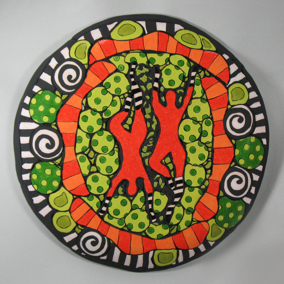 Previous Image Next Image Stand By Me “Stand By Me” Medium: Low fire ceramic. Length: 15.25″; Width 15.25″. Glaze and underglaze. Artist: Beth Hardesty. NFS