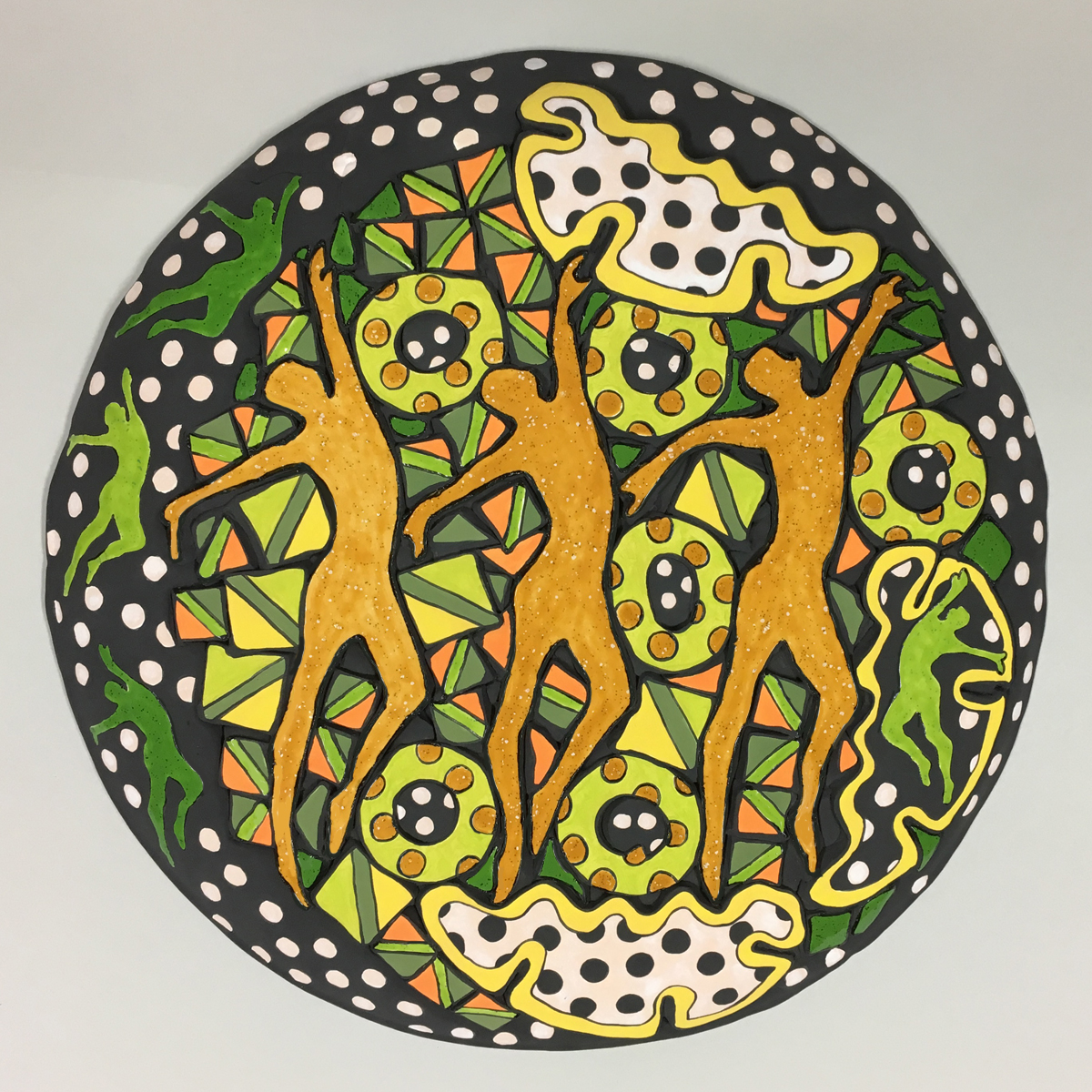 Previous Image Next Image Walk This Way ““Walk This Way” Ceramic with glaze and underglaze. 2″ x 17″ x 17″. Artist – Beth Hardesty. NFS.
